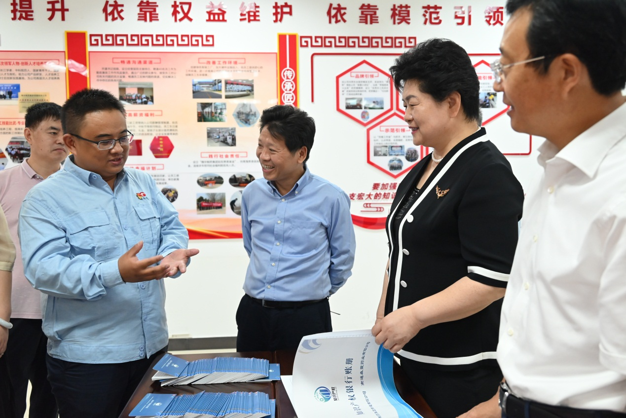 公司董事長、總經理袁擁軍代表公司全體員工對蔡毅德一行表示熱烈的歡迎,并陪同參觀了公司黨群活動室、產改工作室,詳細介紹了在公司“五彩黨建”引領下,以“五個依靠、五心工程”為抓手開展的一系列產改工作。袁擁軍匯報了公司近年來在黨建工作、生產經營、科技創(chuàng)新、人才培養(yǎng)、產業(yè)工人改革等方面取得的優(yōu)異成績。調研過程中,來訪人員饒有興趣的了解了公司 “員工幸福計劃”、“知識產權銀行”制度、“青藍工程”等亮點工作和做法,并給予高度肯定。袁擁軍向來訪人員贈送了由公司黨員和管理骨干開展讀書征文活動編撰的 “單位如家、感恩有我”、“奮斗如歌”、“責任如磐、攻堅有我”系列叢書。