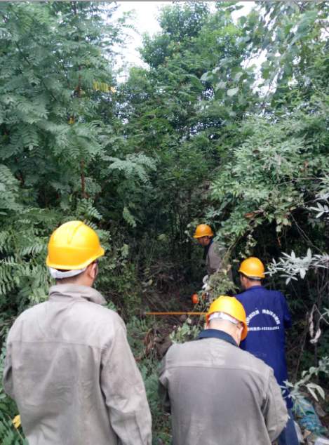 加壓站負責維護供電線路總長為16公里,且大多穿越山林,夏季樹木長勢格外迅猛,掃林任務(wù)顯得更加繁重。在密閉的樹林里異常悶熱,到處都是蚊蟲樹刺,巡線人員早上7點之前就早早出發(fā),戴著安全帽穿著厚厚的工作服,,頂著火辣辣的太陽,流血流汗,消滅影響供電安全的每一處樹障。(圖為工作人員正在砍伐樹障)