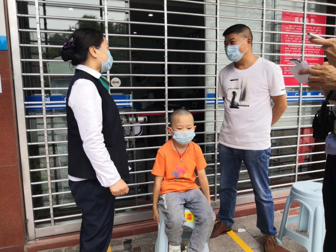 當(dāng)日中午,龍泉營(yíng)業(yè)廳大堂經(jīng)理王萍發(fā)現(xiàn)一名年幼的小男孩獨(dú)自坐在營(yíng)業(yè)廳門(mén)前的馬路邊哇哇大哭,臉上一臉驚恐。極具責(zé)任心和愛(ài)心的王萍急忙上前詢問(wèn)發(fā)生了什么事?從孩子口中得知,他是大悟人,上午和媽媽、妹妹到西寶山游玩時(shí)走散了,又不知道回家的路,他很著急,不知道該怎么辦。