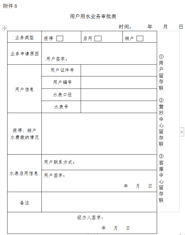 8.《用戶(hù)用水業(yè)務(wù)審批表》
