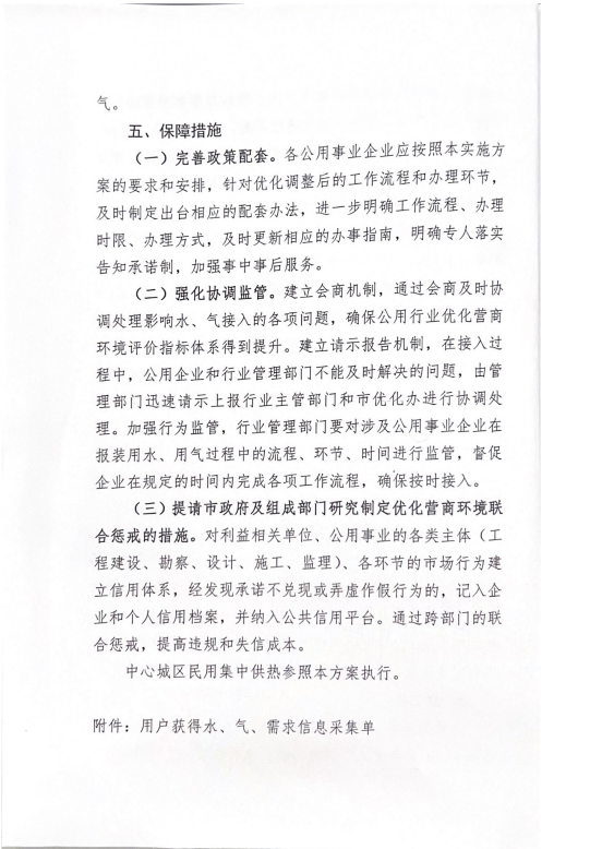 關(guān)于進(jìn)一步優(yōu)化中心城區(qū)用水用氣報裝實施方案的通知