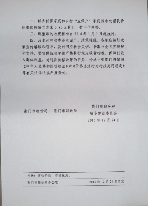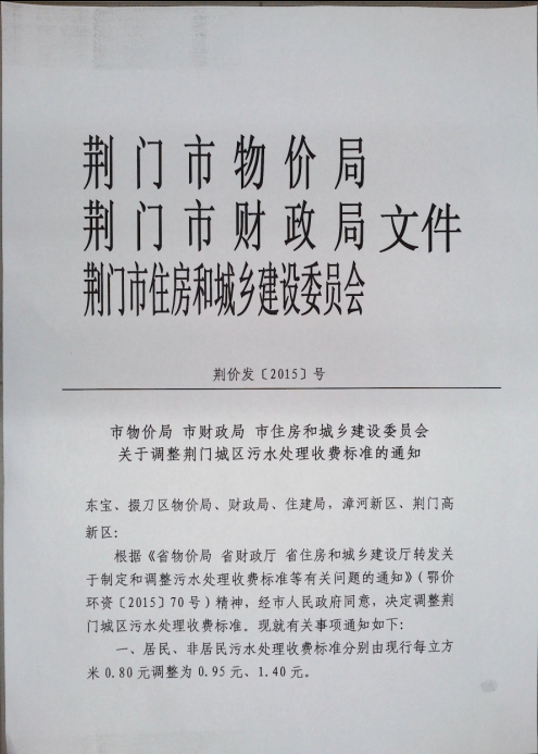 關(guān)于調(diào)整城區(qū)污水處理收費標準的通知
