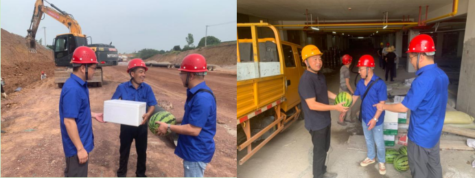 潤澤公司一行先后前往高鐵新城片區(qū)尉遲公路管網(wǎng)改造項目、印象未來城戶表項目、龍井大道管網(wǎng)改造項目等施工現(xiàn)場慰問職工,傾聽職工心聲,收集改進建議?,F(xiàn)場發(fā)放解暑飲料、防暑藥品,并向不畏酷暑、堅守一線職工們表示敬意。