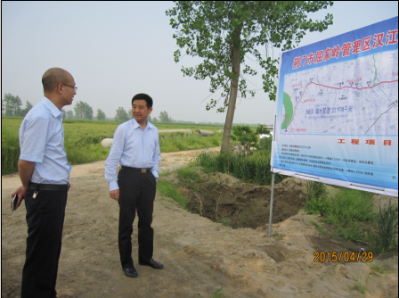 4月29日下午,市委副書記、市長肖菊華、副市長鄭中華在屈家?guī)X、市水務(wù)局等相關(guān)部門、市住建委黨委書記、主任楊劍、市供水總公司黨委書記、總經(jīng)理陳永根陪同下視察漢江引水工程現(xiàn)場,肖市長要求市水務(wù)局配合屈家?guī)X政府抓緊辦理完善項(xiàng)目前期手續(xù);啟動(dòng)加快財(cái)評(píng)、招投標(biāo)等相關(guān)手續(xù);加快推動(dòng)工程建設(shè)。市住建委黨委書記、主任楊劍表示漢江引水工程手續(xù)完備后,按照肖市長時(shí)限要求,兩個(gè)月內(nèi)完成全線施工,要求市供水總公司制定兩個(gè)月施工方案,倒排工期,精心組織,確保完成。
