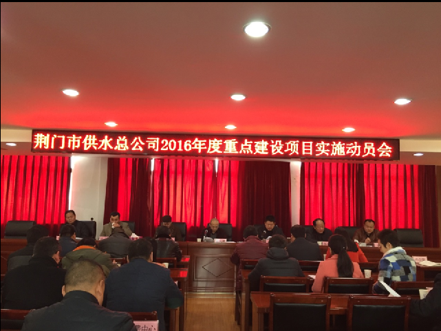 黨委書記、總經(jīng)理陳永根作會(huì)議動(dòng)員,陳總分析了當(dāng)前發(fā)展形勢(shì),指出2016年公司面臨重大發(fā)展機(jī)遇和挑戰(zhàn)。隨著中央城市工作會(huì)議以及市委七屆八次全體會(huì)議的召開,城市建設(shè)迎來歷史性發(fā)展機(jī)遇,荊門江漢平原中心城市的定位,十三五期間荊門城市建設(shè)資金達(dá)2200億元,三年滾動(dòng)資金就達(dá)800億,2016年公司政府投資項(xiàng)目資金達(dá)1億,要搶抓機(jī)遇 、迎難而上,攻堅(jiān)克難、鍛煉隊(duì)伍、優(yōu)化結(jié)構(gòu),開辟新的經(jīng)濟(jì)增長點(diǎn);要強(qiáng)化措施,成立四水廠、中心城區(qū)供水設(shè)施、象山大道改造、三條高速出入口改造及中心城區(qū)消防栓建設(shè)、掇刀區(qū)供水管網(wǎng)建設(shè)、東寶區(qū)供水管網(wǎng)建設(shè)、漳河新區(qū)供水管網(wǎng)建設(shè)、響嶺加壓站和二水廠備用電源等七個(gè)項(xiàng)目建設(shè)專班,分別由一名副總經(jīng)理擔(dān)任責(zé)任領(lǐng)導(dǎo),對(duì)應(yīng)一個(gè)責(zé)任處室、單位,明確職責(zé)、層層抓好落實(shí);要抓好項(xiàng)目前期工作,確保項(xiàng)目落地生根,確保按時(shí)保質(zhì)完成;相互溝通協(xié)調(diào)協(xié)作、形成合力,確保本職工作、項(xiàng)目建設(shè)兩不誤兩促進(jìn);要強(qiáng)化執(zhí)紀(jì)問責(zé),由公司紀(jì)委負(fù)責(zé),加強(qiáng)對(duì)重點(diǎn)工作、項(xiàng)目落實(shí)情況進(jìn)行督辦問責(zé)、推動(dòng)落實(shí),按照任務(wù)分工、時(shí)間節(jié)點(diǎn)督辦,強(qiáng)化擔(dān)當(dāng)、強(qiáng)化執(zhí)行力,加快進(jìn)程,對(duì)落實(shí)不力的、遲滯延誤的要根據(jù)《中國共產(chǎn)黨紀(jì)律處分條例》相關(guān)條款進(jìn)行處理;要?jiǎng)?chuàng)新開展工作,主動(dòng)與主管部門對(duì)接、協(xié)調(diào),提前謀劃、積極跑事、干事、時(shí)不我待、只爭朝夕;要增強(qiáng)項(xiàng)目廉潔自律意識(shí),按規(guī)矩辦事、不踩紅線,確保項(xiàng)目立得起、干部挺得住,能干事、干成事、不出事。會(huì)議動(dòng)員全體干部職工鼓足干勁、通力協(xié)作,迅速掀起項(xiàng)目建設(shè)、會(huì)戰(zhàn)熱潮。
