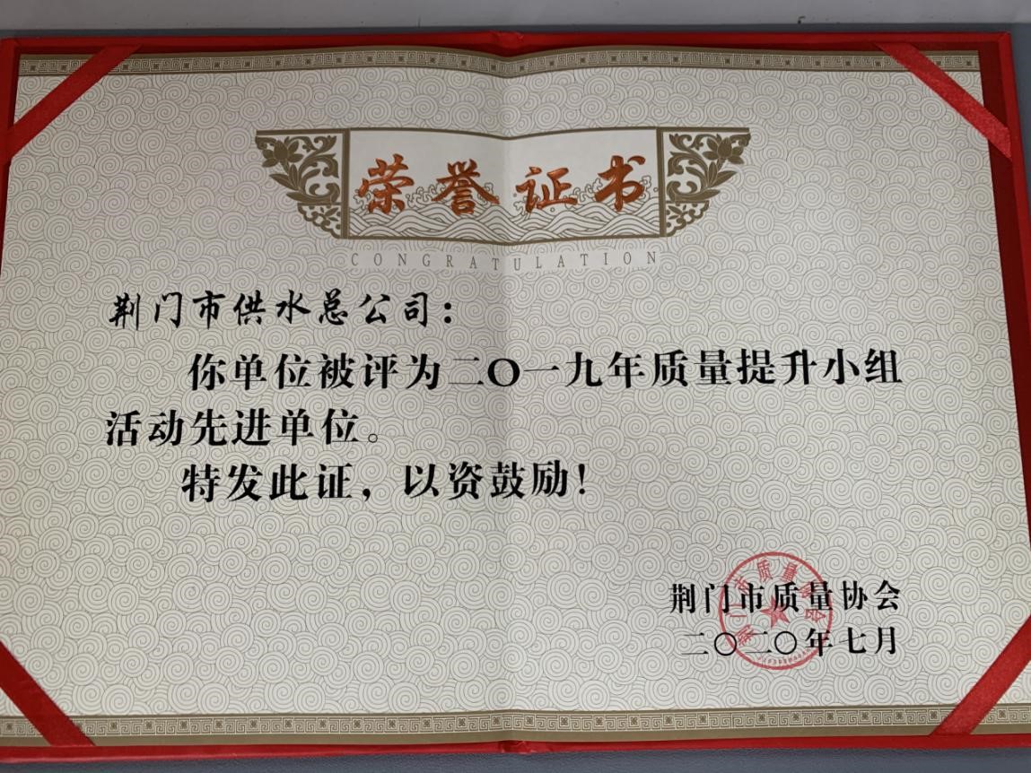 7月16日,荊門市第十五次質(zhì)量提升小組代表會議召開。會上,市供水總公司被評為2019年質(zhì)量提升小組活動先進單位,其中發(fā)布的“縮短掇刀中壓區(qū)停水時間”和“提高廠站出水水質(zhì)”兩項QC成果獲一等獎,“提高廠站設(shè)備巡查時實率”QC成果獲二等獎,公司黨委委員、副總經(jīng)理被評為卓越領(lǐng)導(dǎo)者,生產(chǎn)安全部經(jīng)理劉昕平被評為優(yōu)秀推進者。